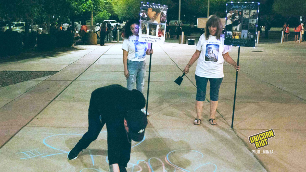 Tucson, AZ – A crowd of about 60 people slowly converged on the empty plaza and parking lots of Pima County Jail Friday night. Bathed in the yellow glow of the streetlights, some gathered in groups and chatted while others hurriedly constructed frames for their custom-made vinyl banners commemorating their family members whose lives were lost in the jail.