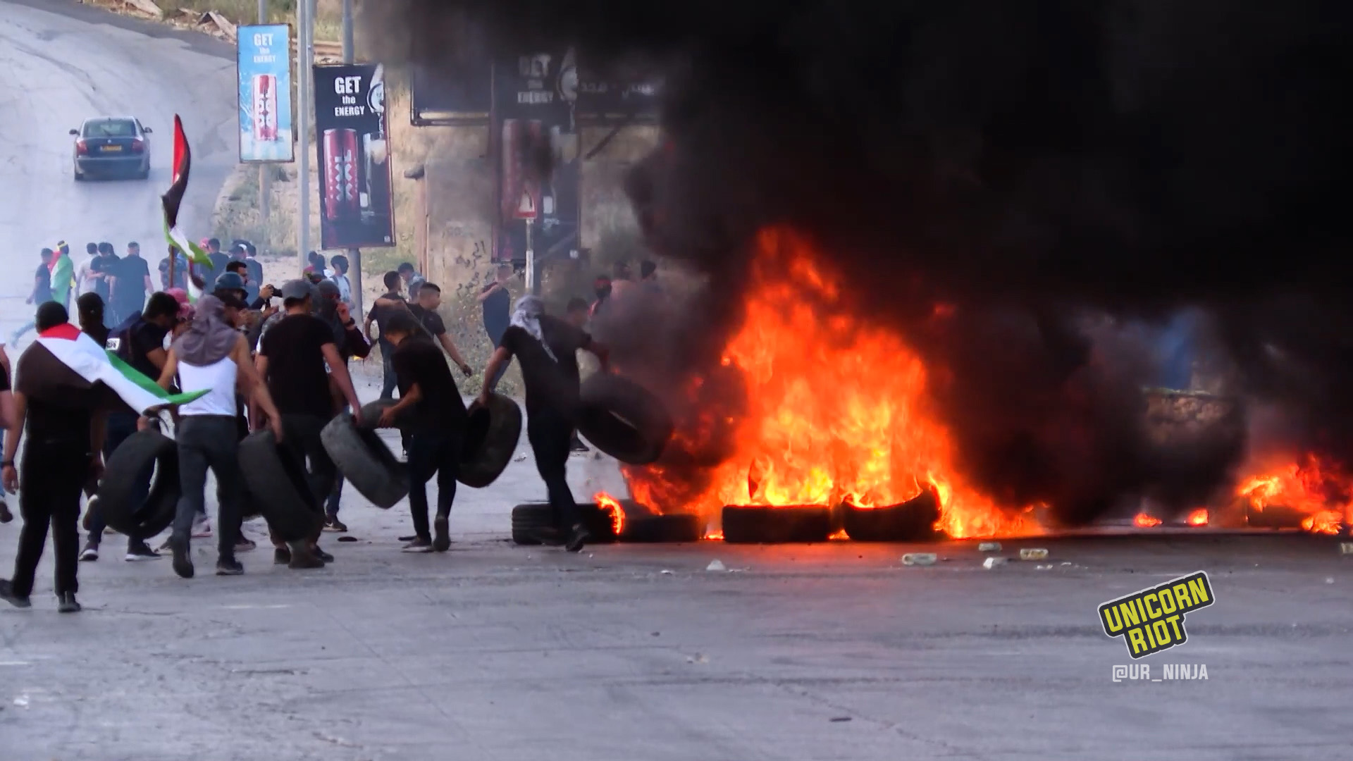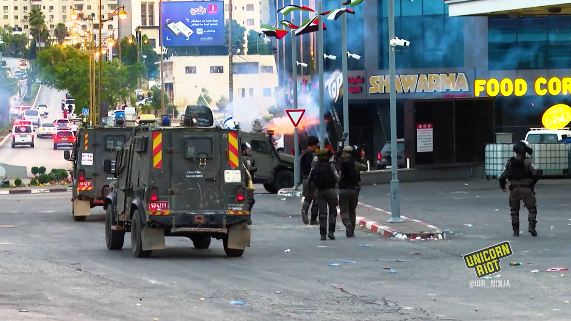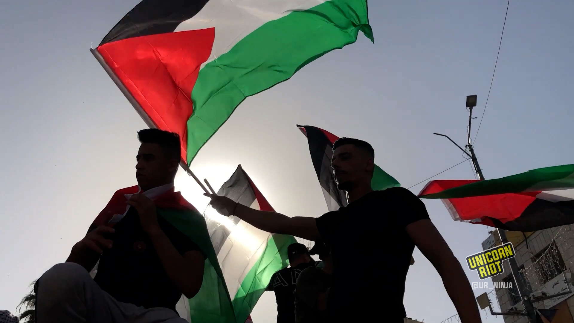 Meanwhile, in the Occupied West Bank city of Ramallah, thousands of Palestinians denounced the Israeli “Flags March” with a march their own.