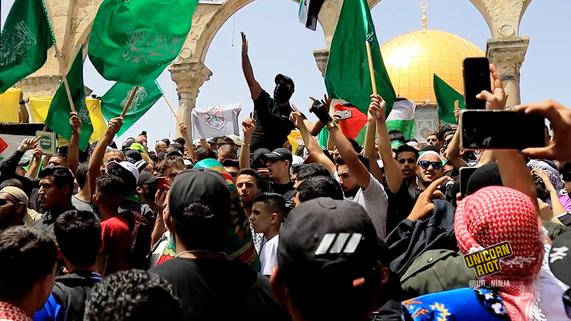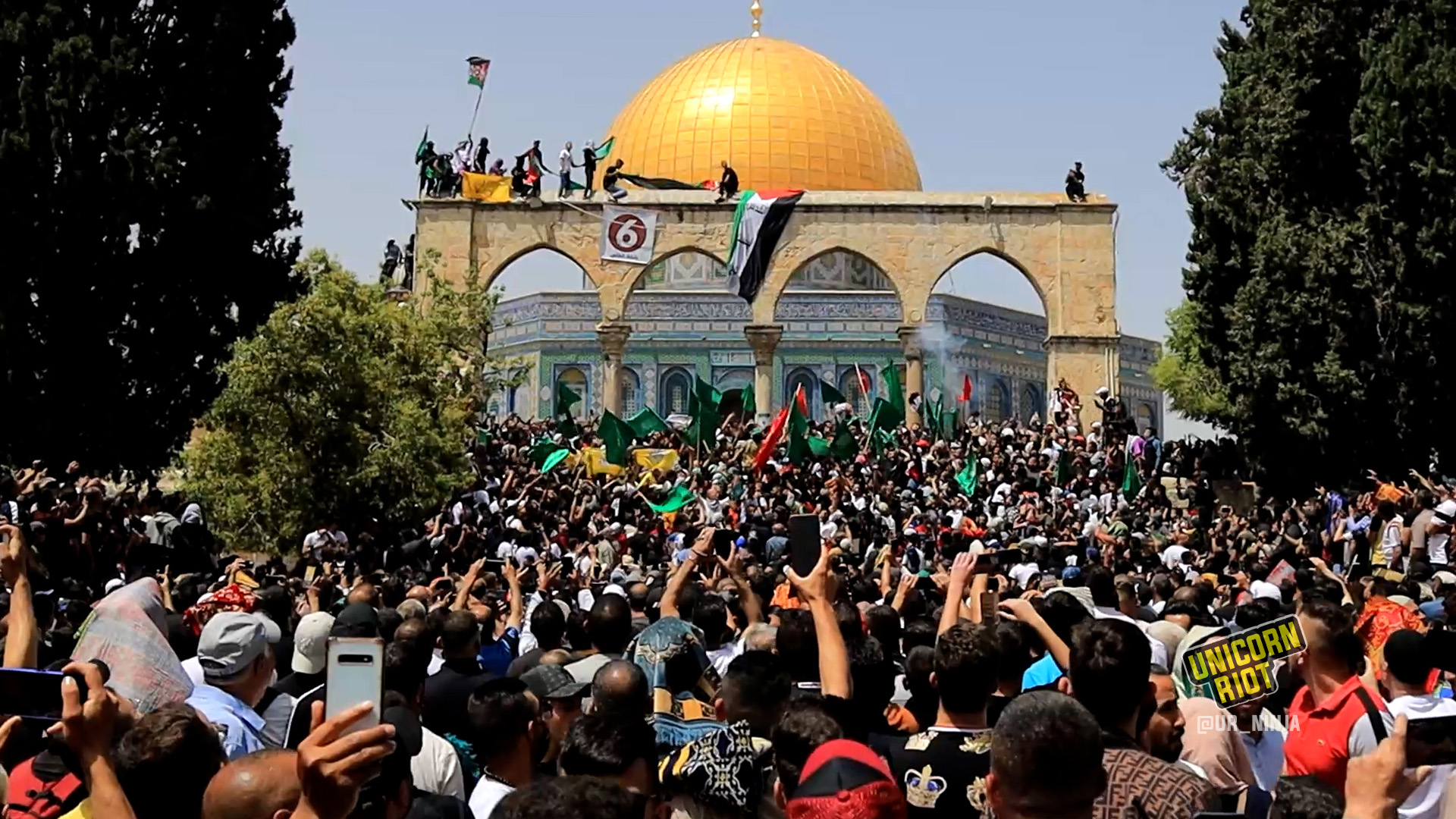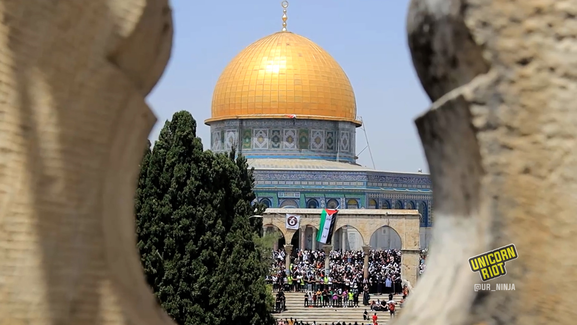 In the afternoon, worshippers and those gathered in the courtyard of Al-Aqsa chanted slogans like “I swear to God, the Most High, the Great, that we protect the blessed Al-Aqsa Mosque.”