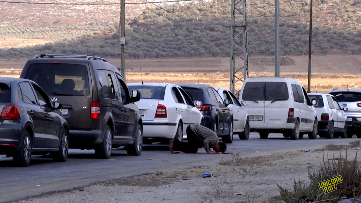 “As you can see in front of you, a pointless checkpoint. There is no excuse. No excuse for anyone to block the road this way. What do they want? Nobody knows. Of course it affects us. All of our time is going to waste. It’s gotten to the point where you prefer to stay at home instead of spending your day at the checkpoint. What’s better?”