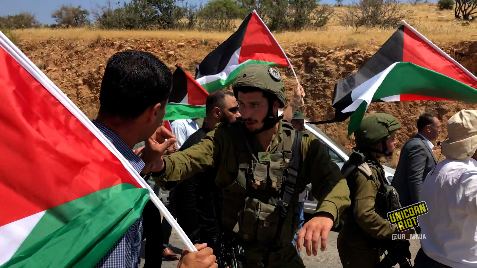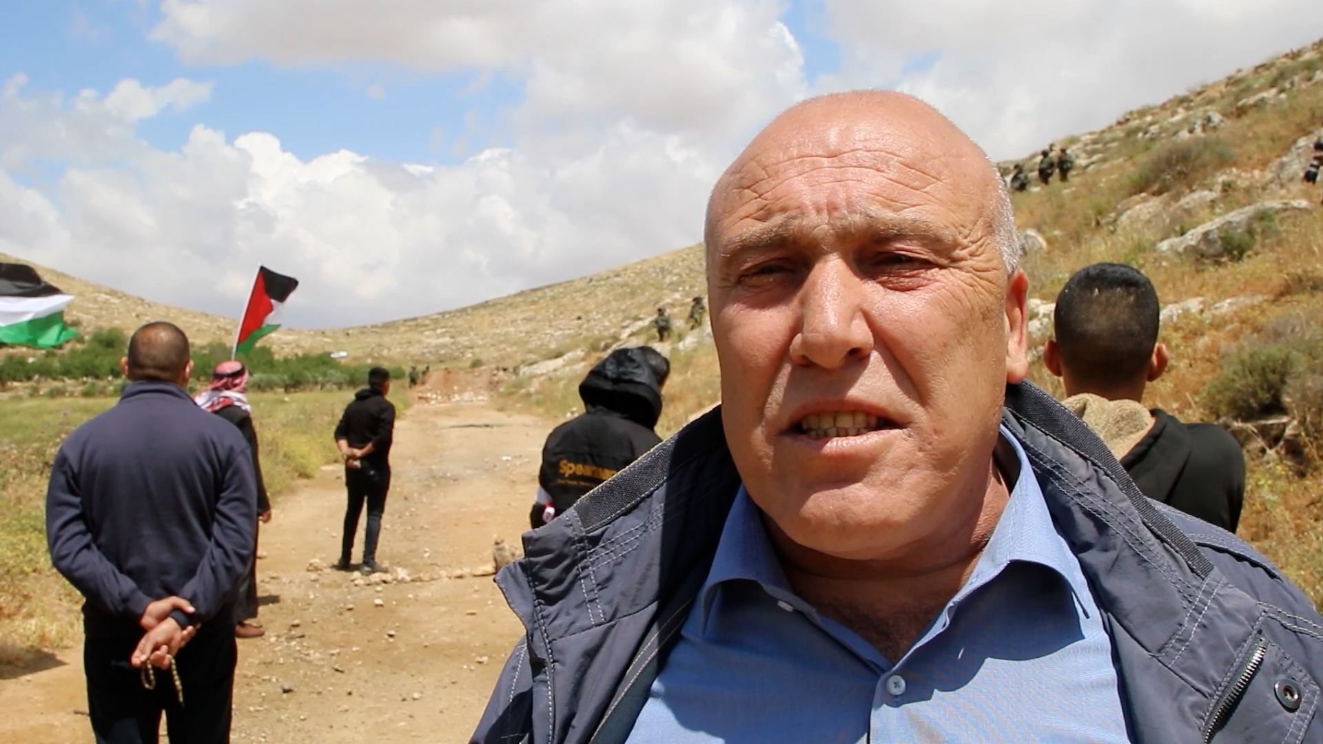 “Specifically there is an outpost inside Al-Farisiya area [Palestinian]. Our message today is that the Persian region and the entire Jordan Valley are Palestinian. The occupation tried to prevent us from crossing to the checkpoint but with our will and the will of those present today, we crossed the barrier. We traveled more than a kilometer but they suppressed everyone who was present whether with gas, pepper spray, sound bombs, or assault with hands.”
