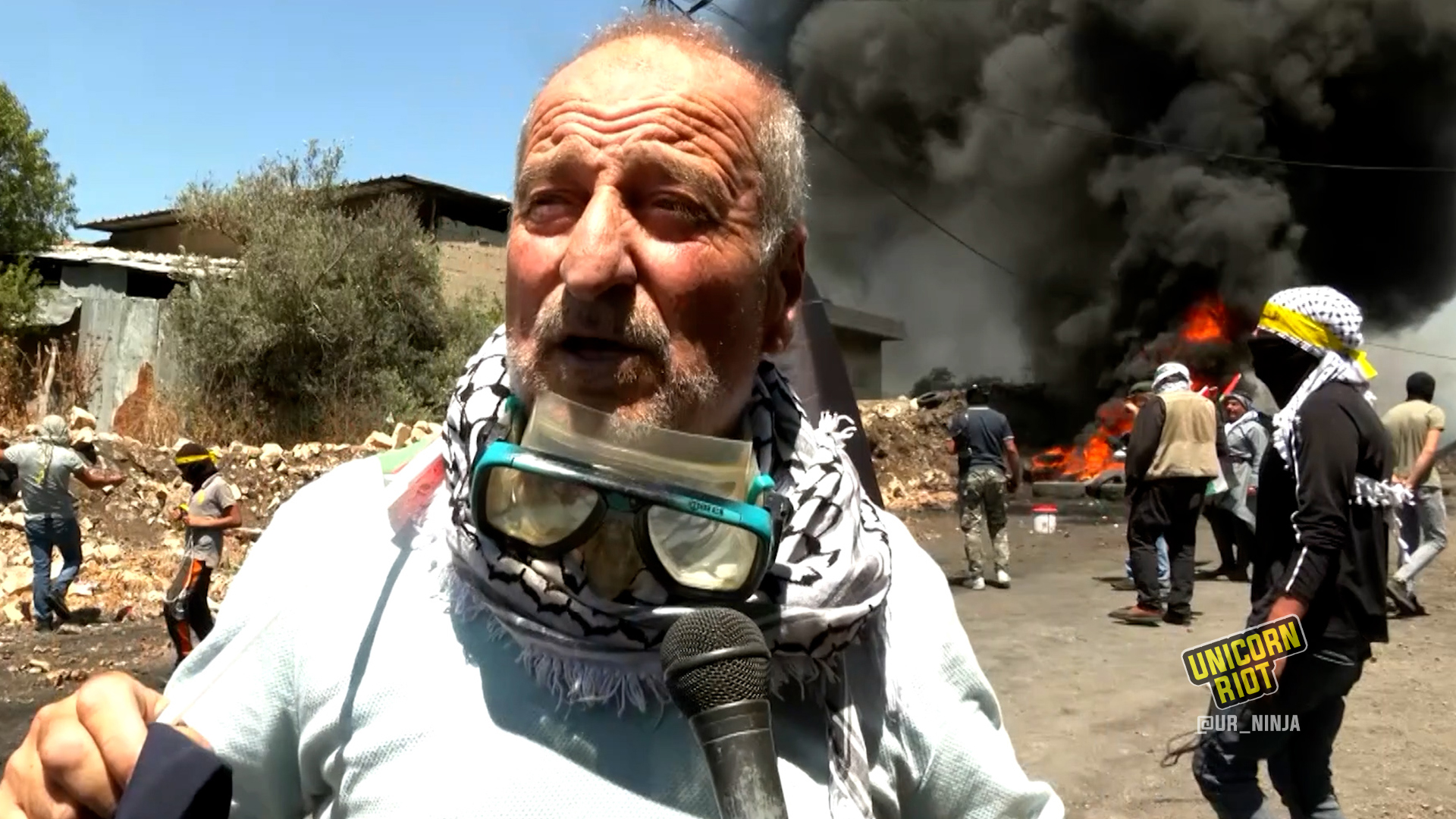 “Emphasizing in this twelfth year that we will continue our march despite all the violent acts of the occupation, incursions into Kafr Qaddum, arrests in Kafr Qaddum and casualties in Kafr Qaddum. From what you see now is this scene: poison gas, rubber bullets and metal bullets. Despite this, we affirm that will not discourage our marches for the independence of our country, Palestine.”