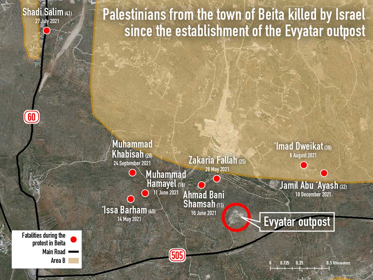 According to Israeli human rights organization B’Tselem, since May 2021, at least seven Palestinians from the town were killed and thousands of others were exposed to teargas, and dozens otherwise injured while trying to oust the colonial settler outpost built atop Mount Sabih (Sbeih).