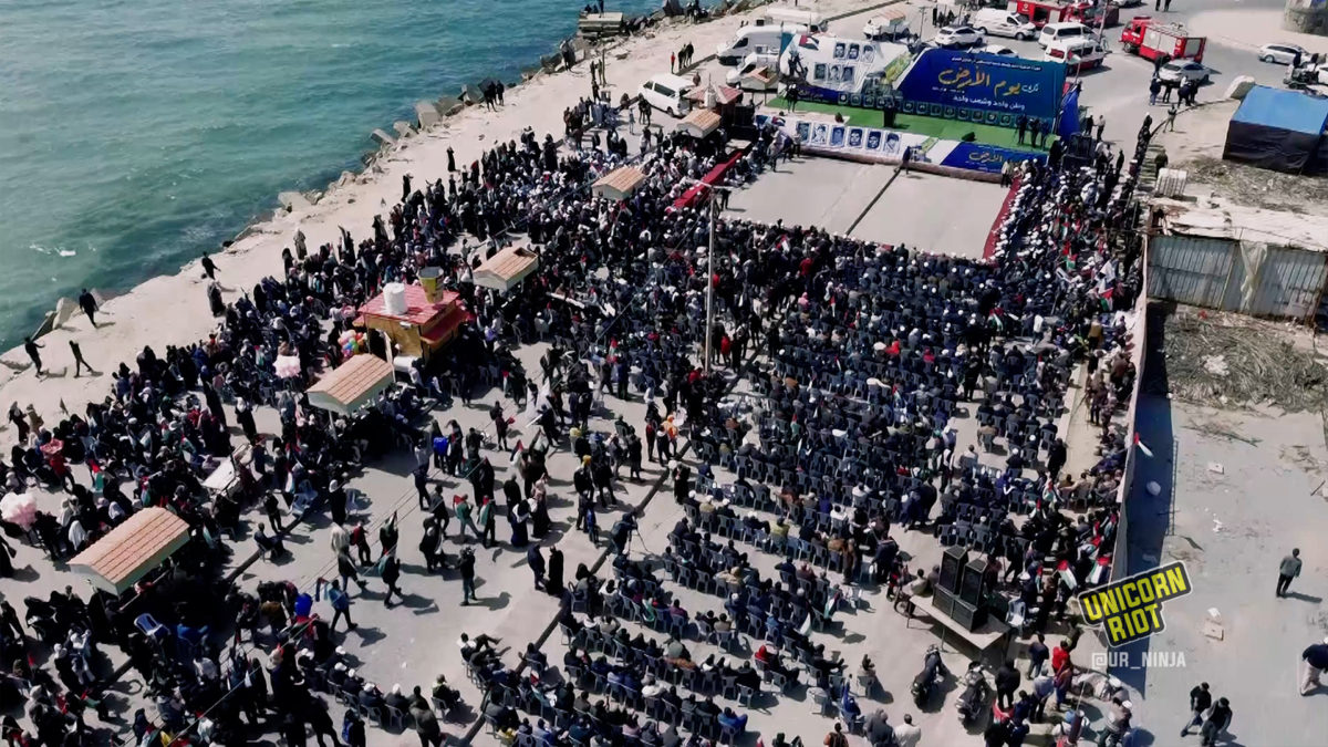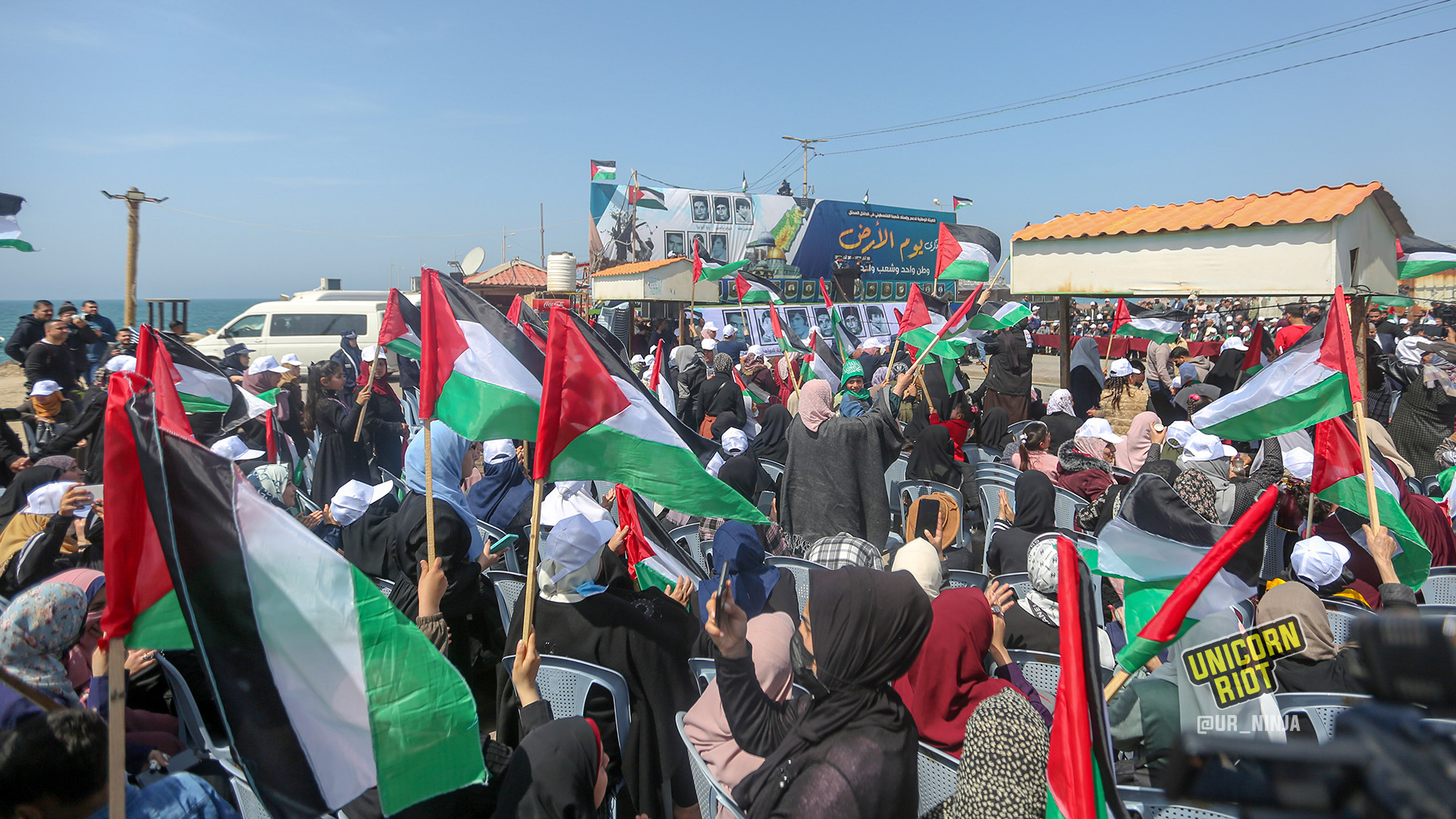 This year, thousands of Palestinians, including high ranking officials from Palestinian movements and top politicians, participated in a massive demonstration at the Port of Gaza. Participants raised Palestinian flags and launched balloons bearing pictures of Palestinian martyrs from 1976, including those killed in recent Israeli attacks.