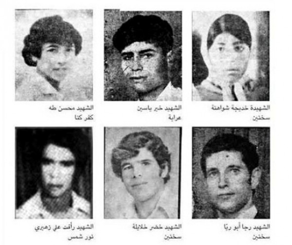 Six Palestinians were killed that day and over 50 were injured by Israeli gunfire: Raja Abu Rayya, Khidr Khalayleh, Khadija Shawahna, Khayr Yassin, Ra’fat Zuheiri, and Muhsin Taha.