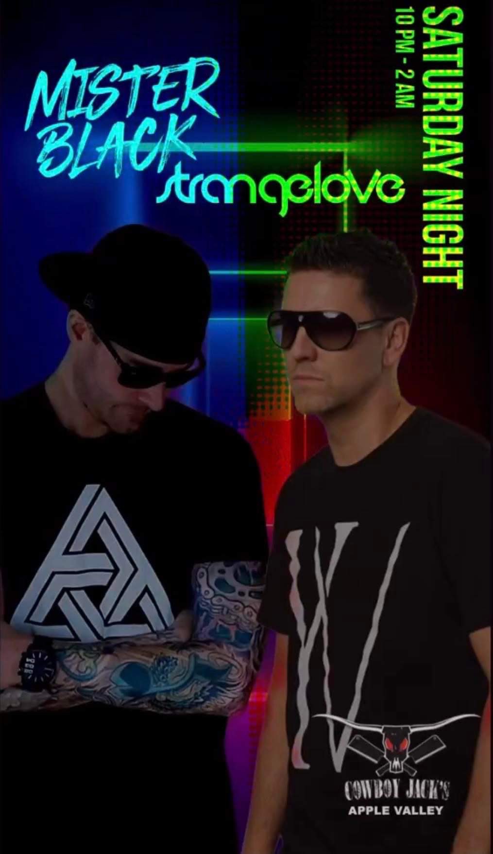 A graphic was posted onto a social media ‘story’ by Jay Tappe, DJ Strangelove, indicating that Nielsen, Mister Black, was set to be performing with him on Saturday night from 10 p.m. to 2 a.m. at Cowboy Jack’s in Apple Valley, Minnesota. The graphic (featuring an older image of Nielsen) was shared with Unicorn Riot by a local DJ concerned that Nielsen could be once again being employed in the music scene.