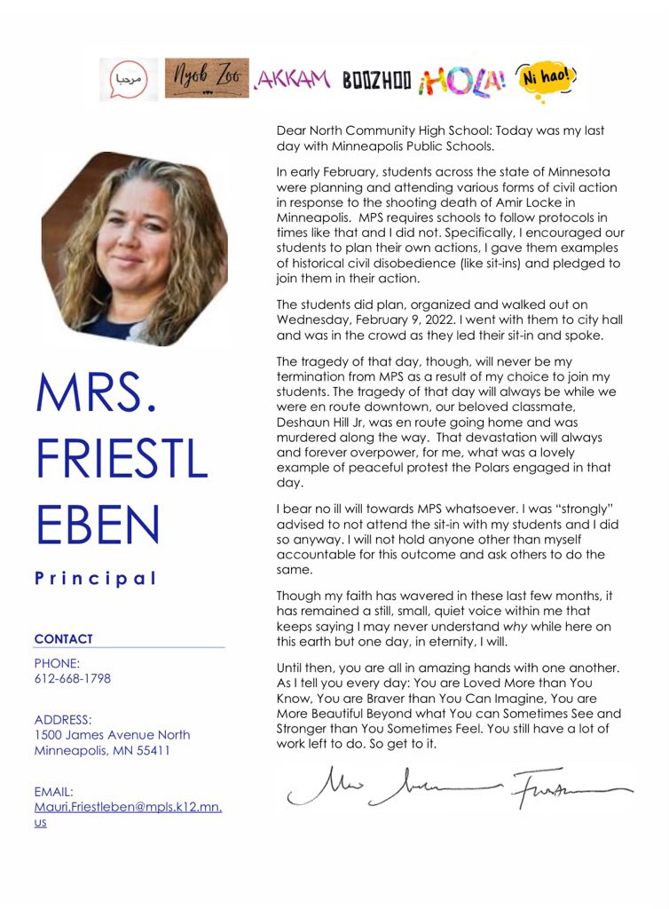 North High students and the social justice organization Minnesota Teen Activists reacted to the firing of their beloved principal with a planned walk-out.