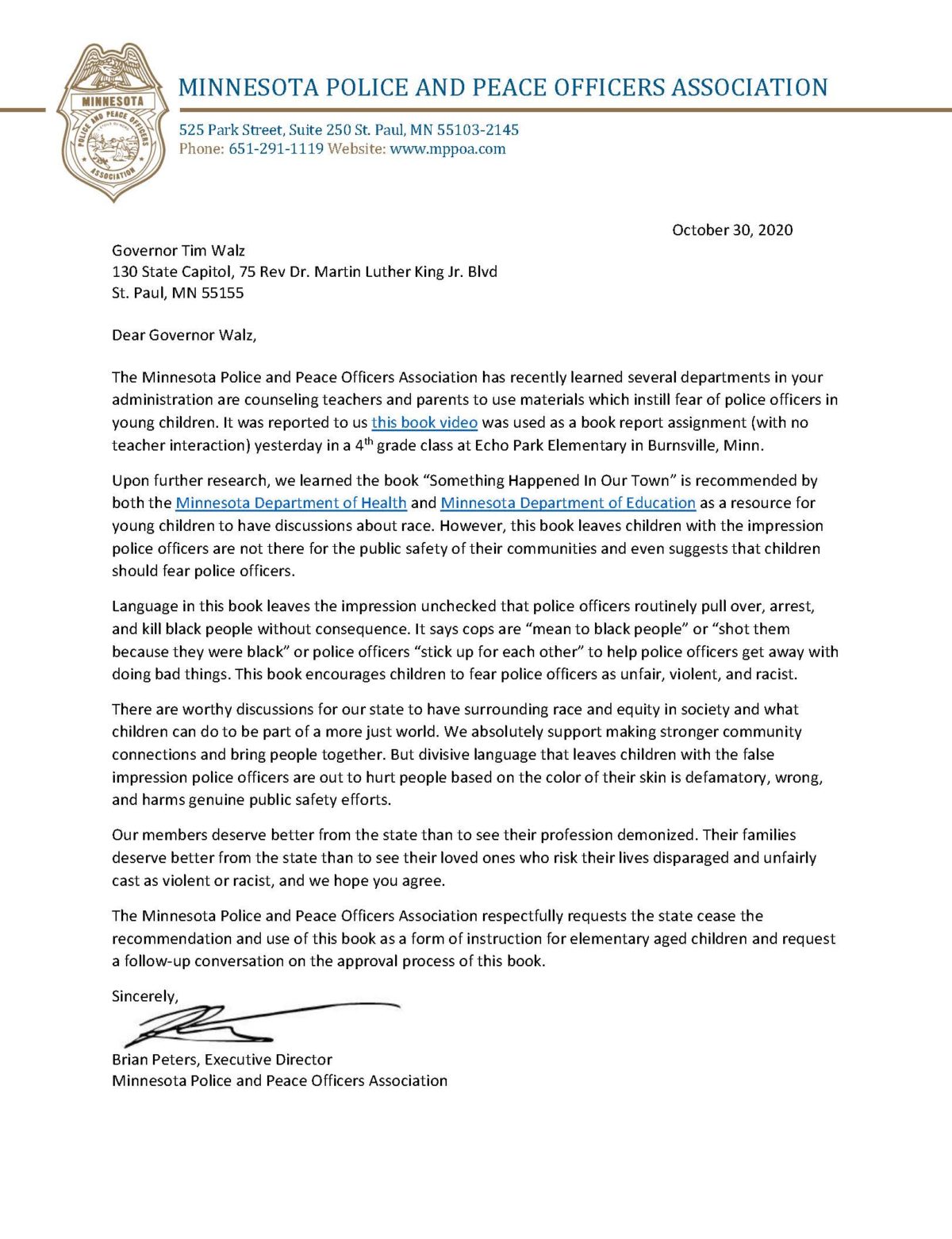 Shortly after the post, the Minnesota Police and Peace Officers Association issued a statement expressing deep disapproval of the classroom assignment. They also criticized Governor Walz for having the book as a resource on the Department of Education and Health websites. Mentioning the Echo Park Elementary fourth grade class, the police association requested that the book be taken down.