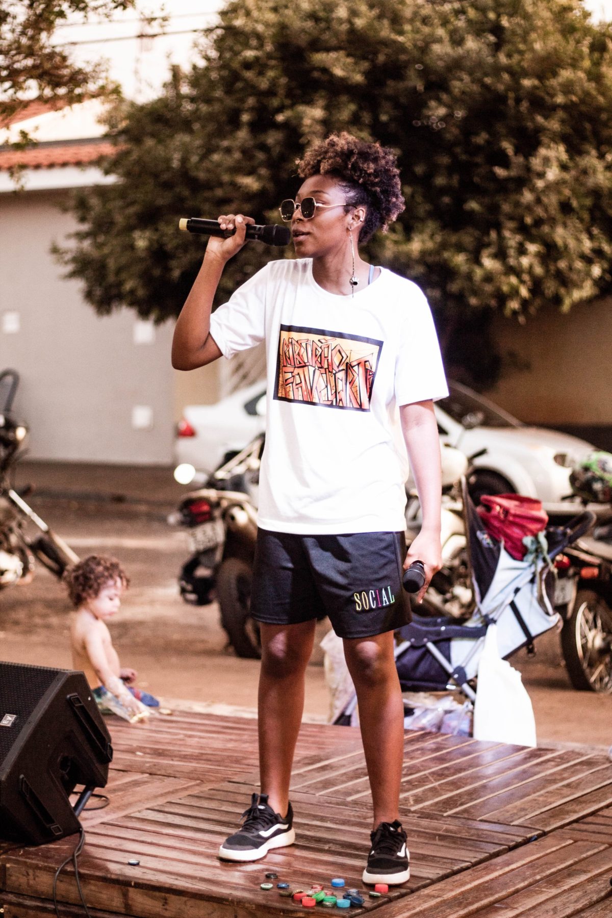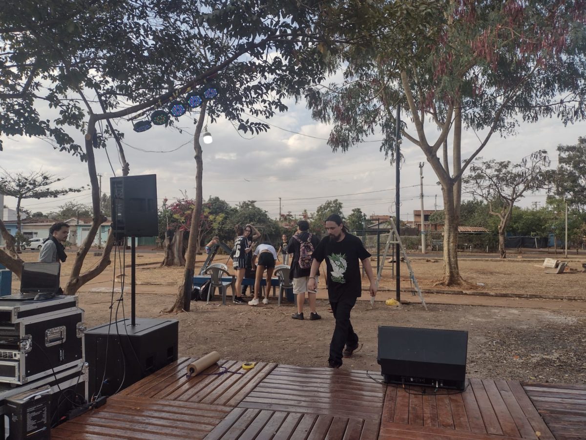 After securing a location they asked for the municipality to clean the park before using it, without success. However, through “gambiarra,” Brazilian improvisational DIY (Do-It-Yourself), organizers and residents of the Jardim Juliana neighborhood created the festival grounds at a park with their own lighting and stage. The setup was then given back to the community.