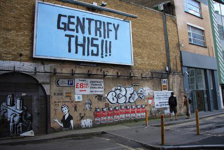 - Gentrification cultivates cultural appropriation by market state, ‘folklorization’ of cultural aspects especially where ‘touristification’ is intense, creating a museum or gallery-like approach of the public space. Artists are pivotal in these situations and aid through aesthetics to valorize the mundane and the meaningless. (For example, street art is repackaged for lobbies of new luxury apartment buildings.)
