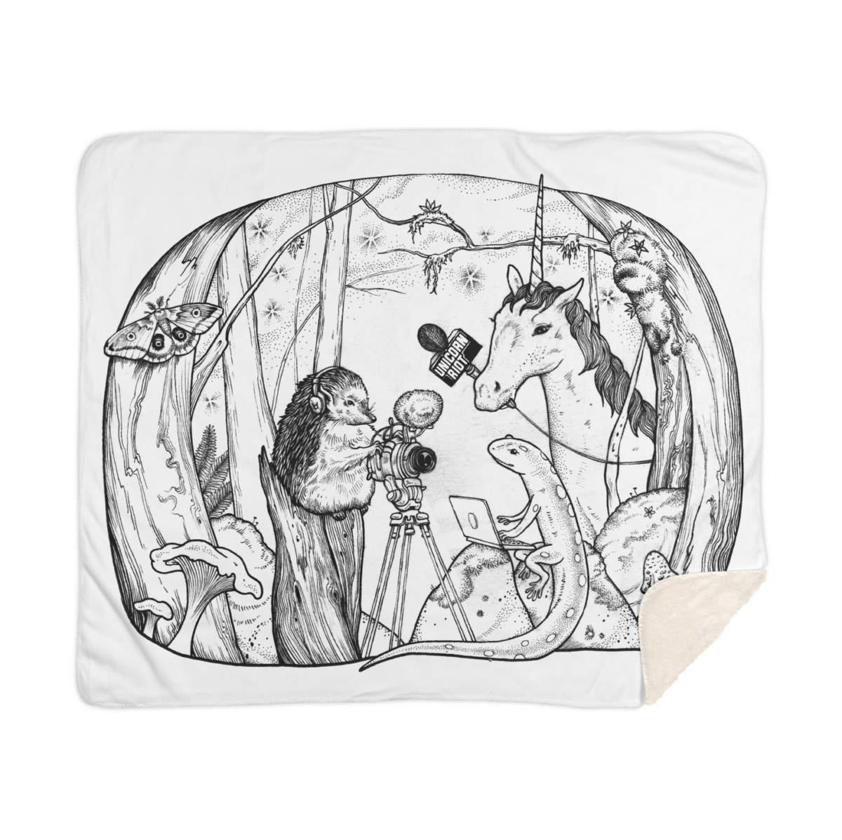 Cuddle up under one of our blankets to enjoy a movie or to watch a Unicorn Riot stream or videos!