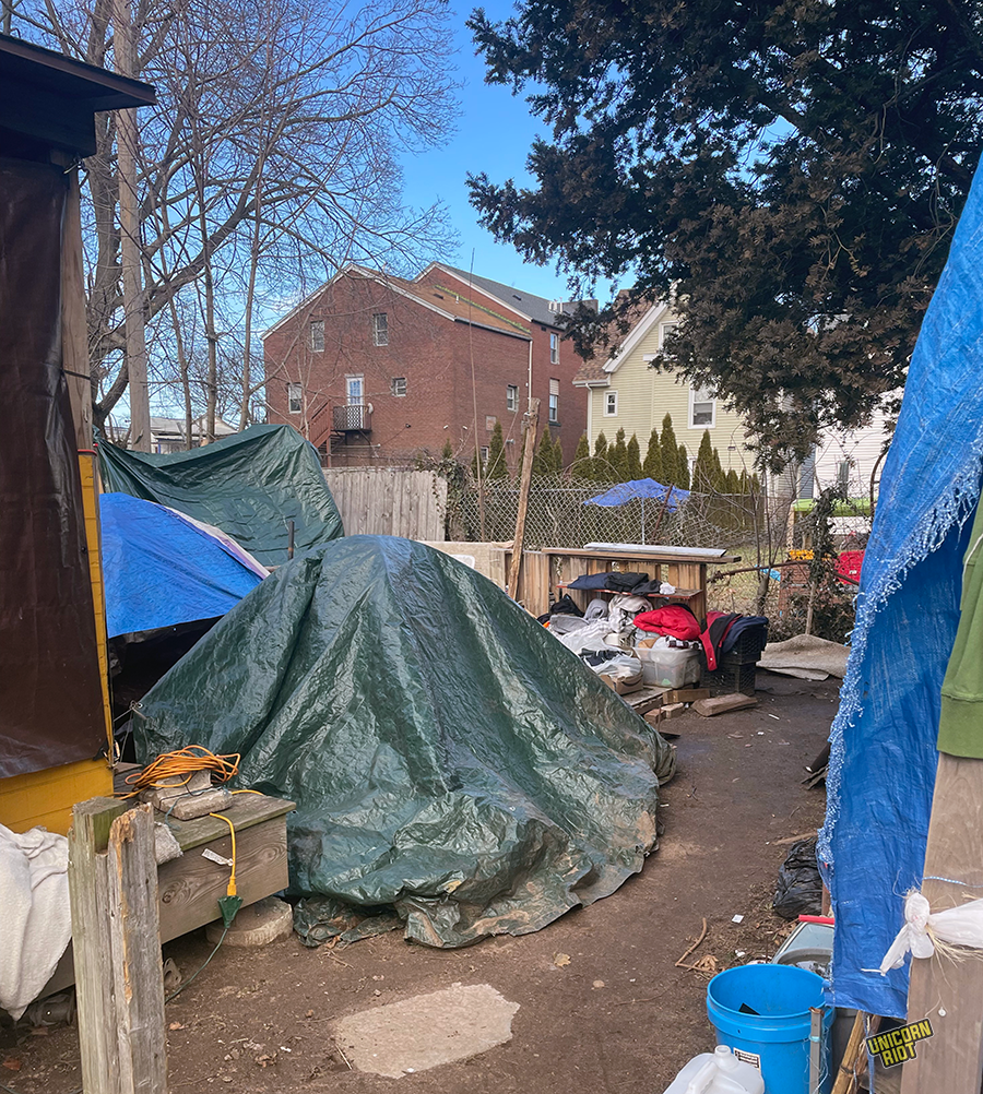 Colville’s Human Rights Zone is a physical representation of New Haven’s failure to meet the needs of its residents and the result of decades of divestment from primarily Black and Brown neighborhoods in the city. For Colville, it is not only that the city is failing to meet the needs of its residents, but that it actively works to criminalize their existence: “people who are homeless have the right to take refuge on public land…when the state does not provide them with adequate affordable housing.”