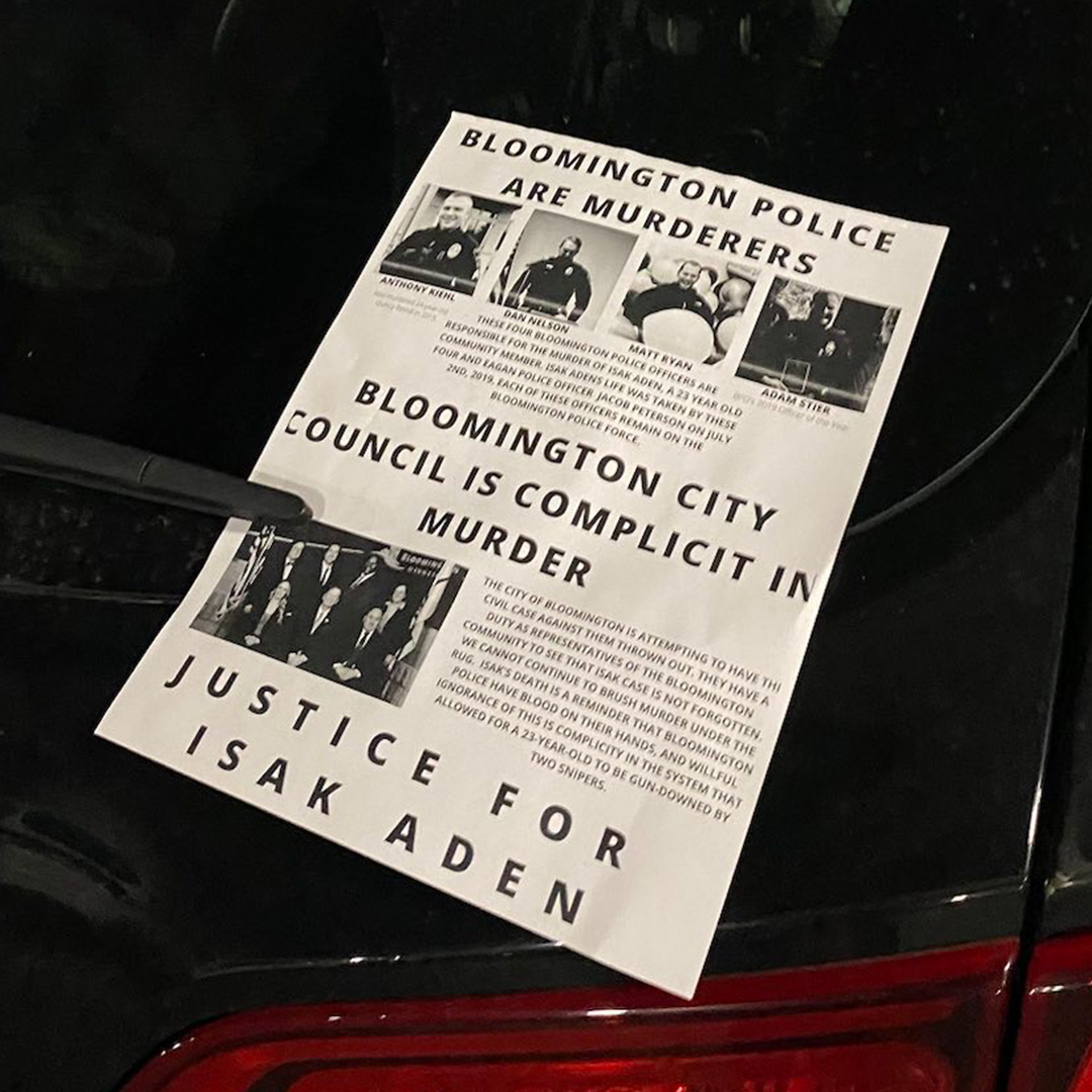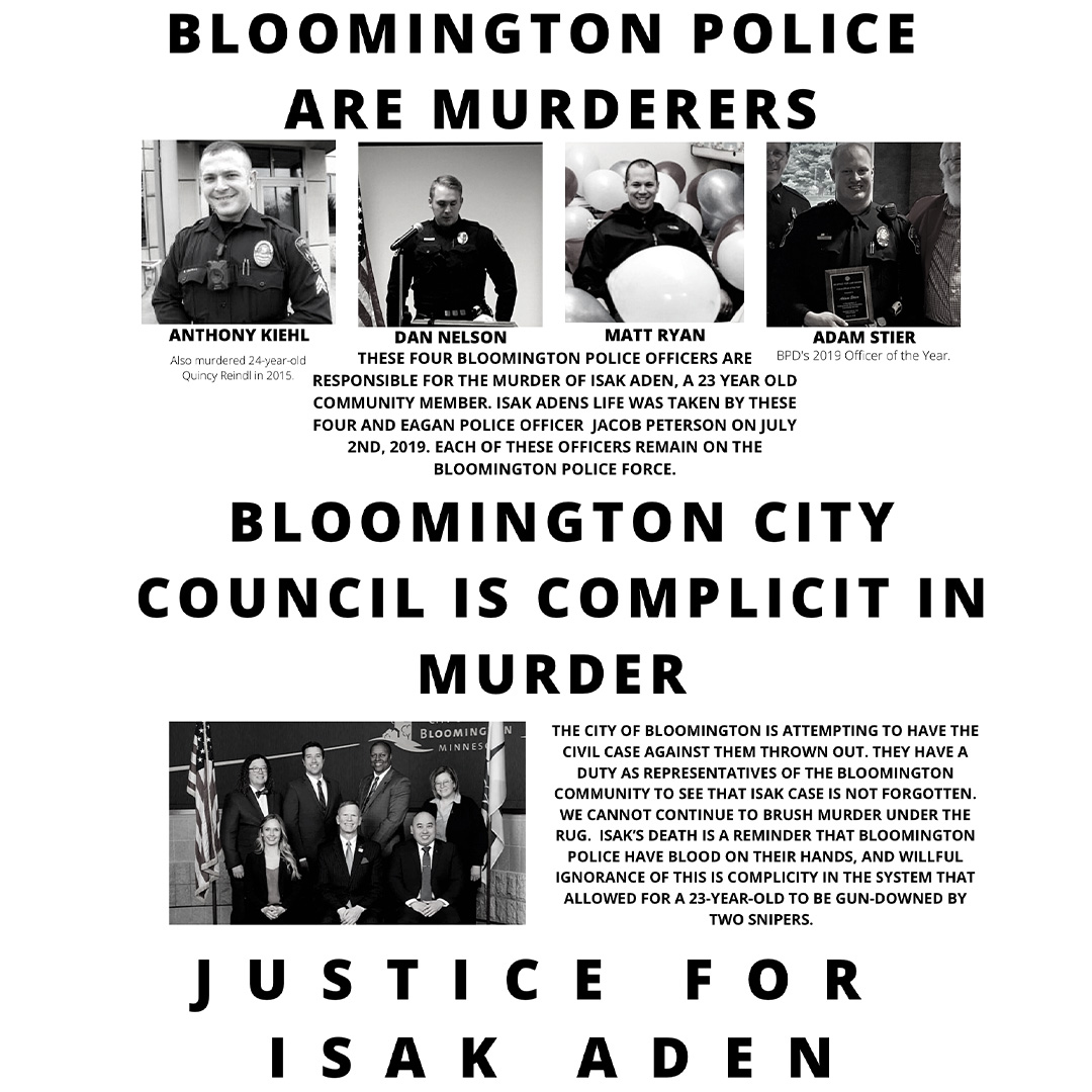 We ask our fellow residents of Bloomington to remember Isak Aden, remember that this city has blood on its hands.