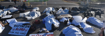 Tucson, AZ — Raytheon employees on their way to work Thursday morning were confronted with an unusual spectacle — about 120 people, dressed in all black, lying in the road covered in white sheets, blocking one of the entrances to U.S. Air Force Plant 44, operated by Raytheon Missiles and Defense. Their reactions were mixed: … Continue reading Die-In at Raytheon Compound in Tucson Calls Out Complicity in Gaza