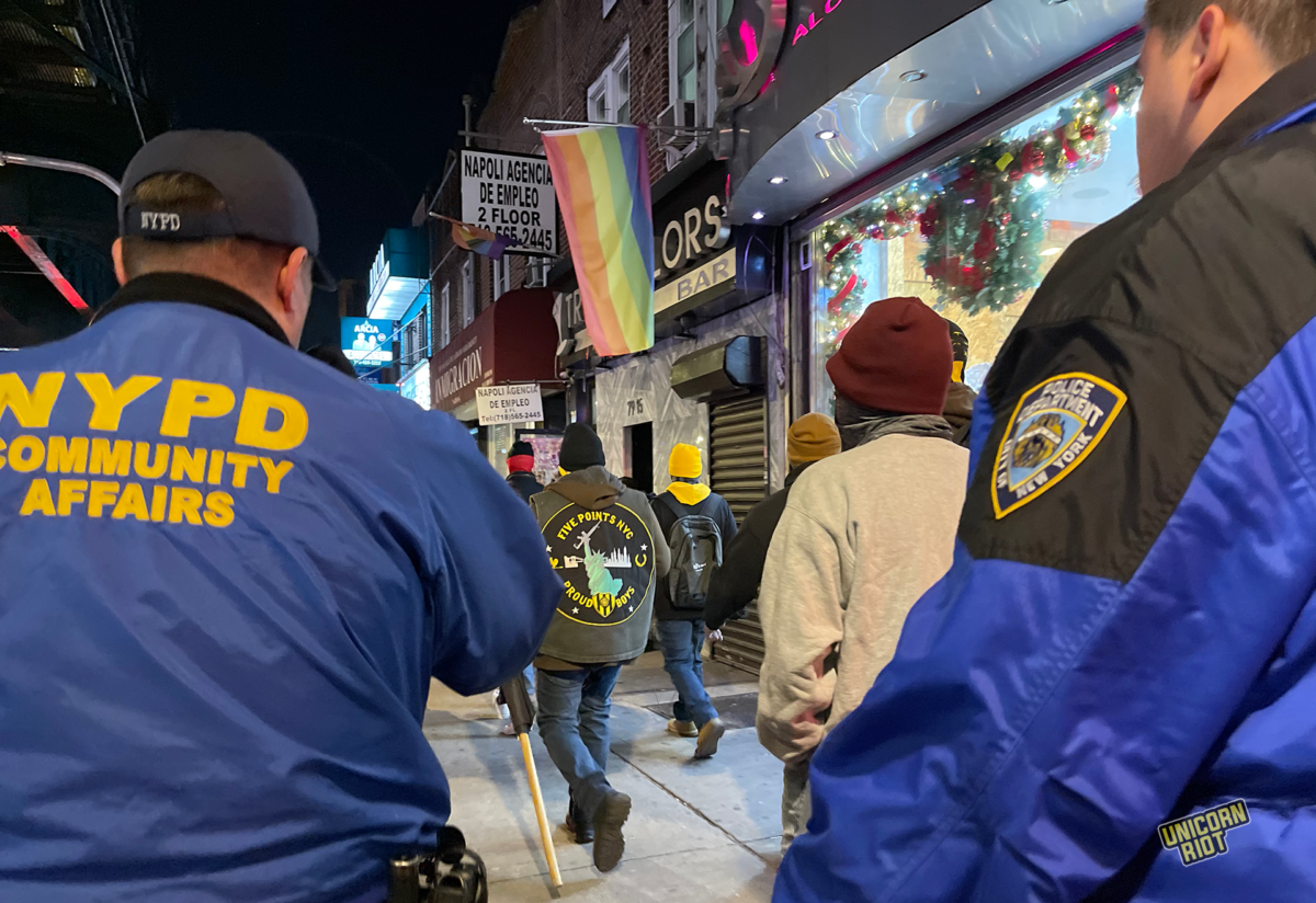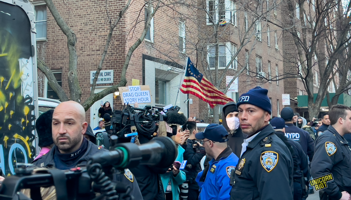 Queens, NY – On Dec. 29, 2022, hundreds of New Yorkers gathered outside the Jackson Heights Public Library in Queens, where a drag story hour was taking place. On one side were roughly 40 people protesting the event, including Proud Boys, neo-Nazis, anti-vaccine activists, and conservative Internet personalities. As is usually the case in New York City, protesters against drag story hour were outnumbered by their opponents: over 300 community defenders, intent on ensuring the event continued safety and without disruption. This report outlines key figures involved and the structure of the police response.