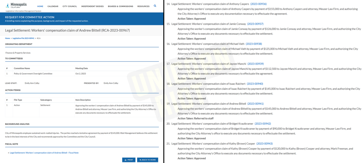 Minneapolis City Council Rejects MPD Sergeant’s Workers’ Comp Settlement