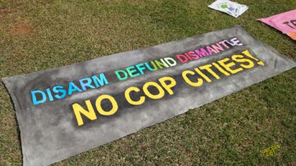 Halfway through Suede Cassidy’s set, a multijurisdictional team of law enforcement officers entered the park where the music festival was and began tackling people to the ground and making arrests. Twenty-three people were arrested and charged with state-level domestic terrorism, bringing the total number of ‘Cop City’ opponents charged under that statute to 42.
