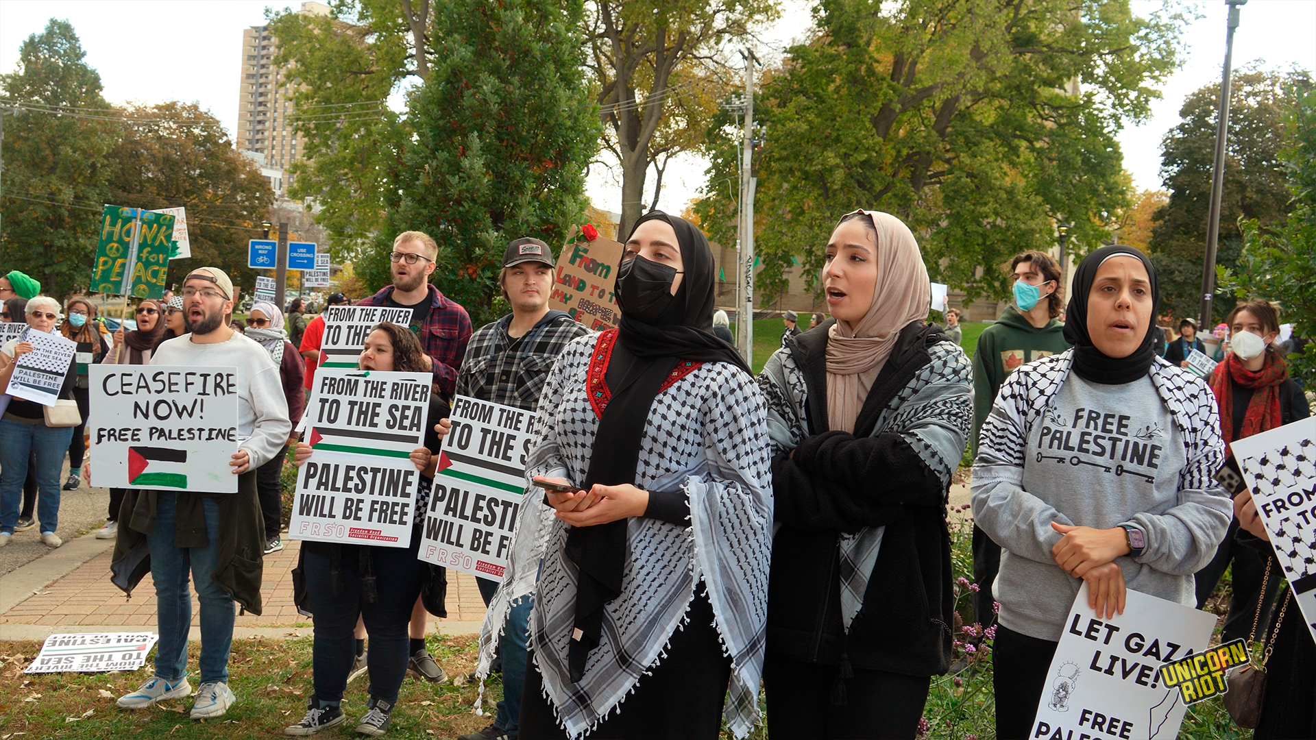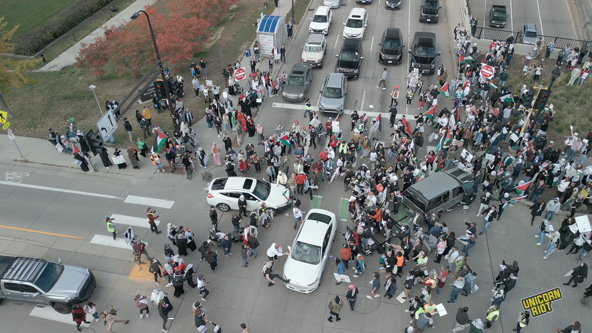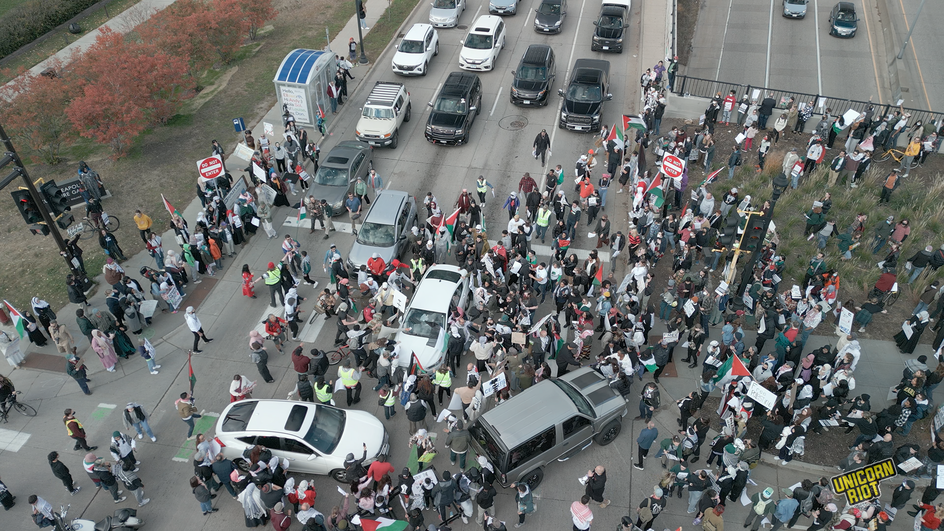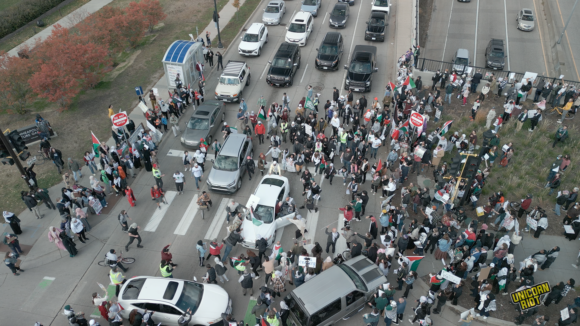 The protest at the intersections of Hennepin Avenue and Lyndale Avenue in Minneapolis, near the Walker Art Center, was the second large gathering there in recent days and at least the fourth pro-Palestinian protest in the Twin Cities area that has drawn thousands of protesters in the last two weeks.