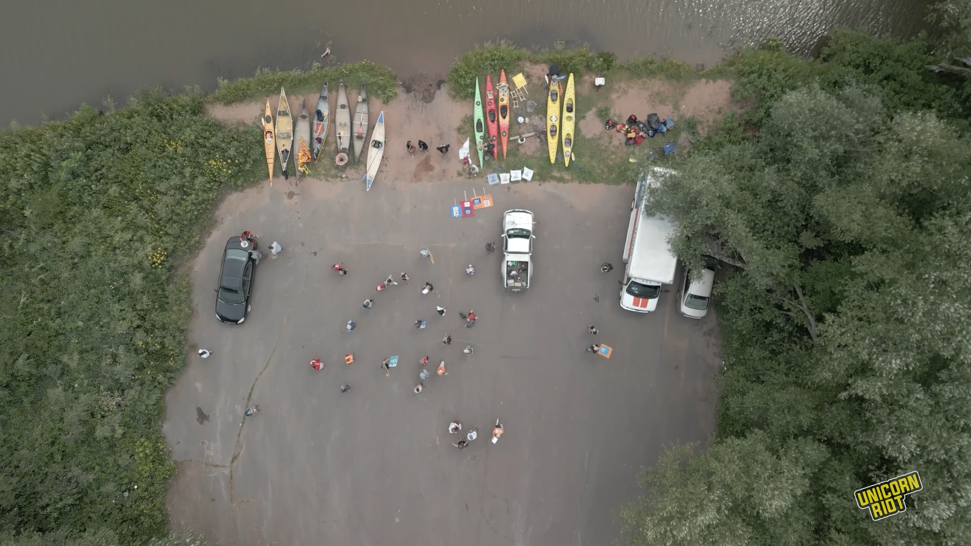 On August 5, 2023, water protectors coordinated a rally and flotilla at the Fish Creek Landing in Ashland, Wisconsin at the site of one of the original Anishinaabe camps on Lake Superior. About 10-15 canoes were launched to paddle along the creek with “Stop Line 5” signs and papier-mâché hats representing marine life that occupies Lake Superior and the surrounding waters.