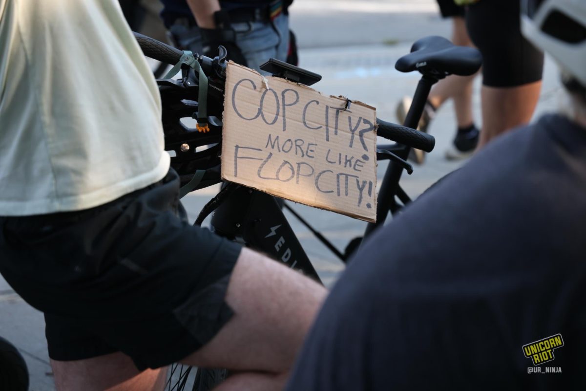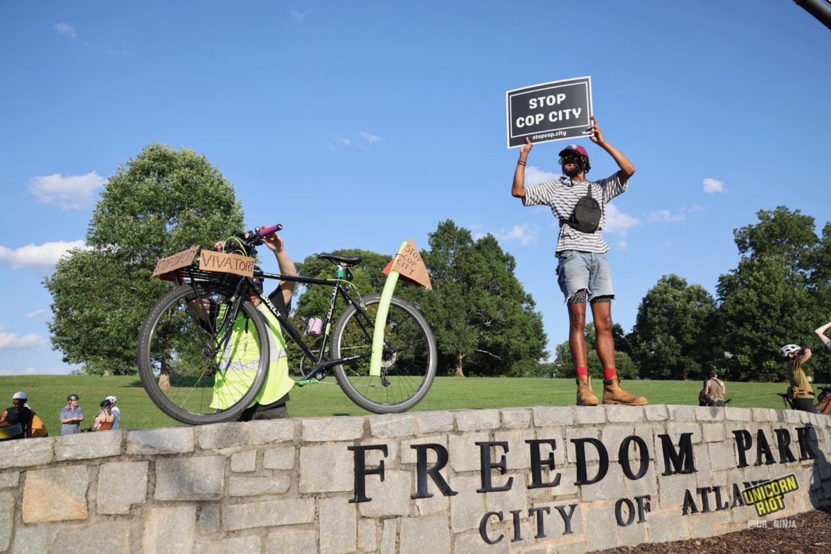 Belkis Terán, Tortuguita’s mother, thanked protesters for carrying on her child’s memory before the crowd rode to Freedom Park for a short rally. There, people chanted and gathered signatures for the referendum effort to put ‘Cop City’ up to a vote.