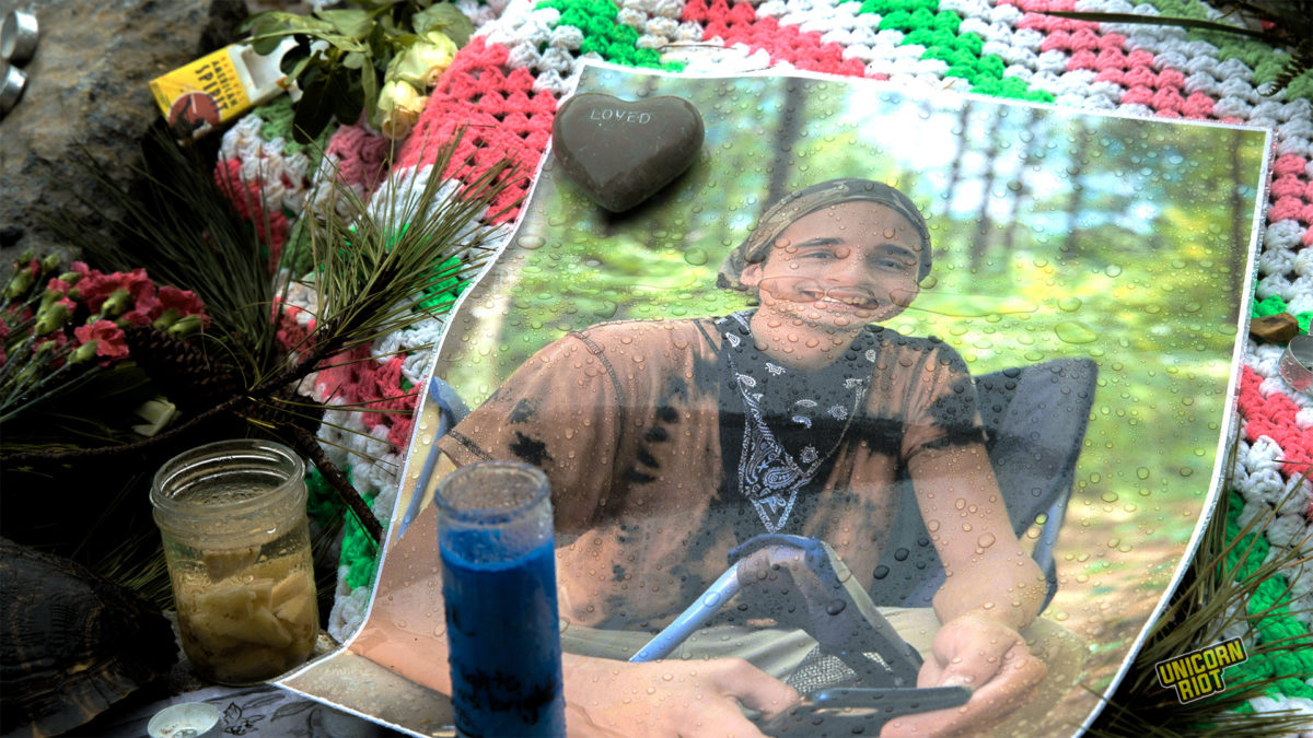 Friends of Terán who spoke with Unicorn Riot emphasized Tortuguita’s practice of radical love and fierce commitment to building a better world. They coordinated fundraising efforts and mutual aid projects, and acted as a steward for those coming to the forest to join the fight. A trained medic, Terán often traveled to queer and trans gatherings to help support other queer people and organizations using their training and knowledge. According to those who knew them in the movement, they were a complex, unique and thoughtful person who lived by their convictions and brought dedication to their work.