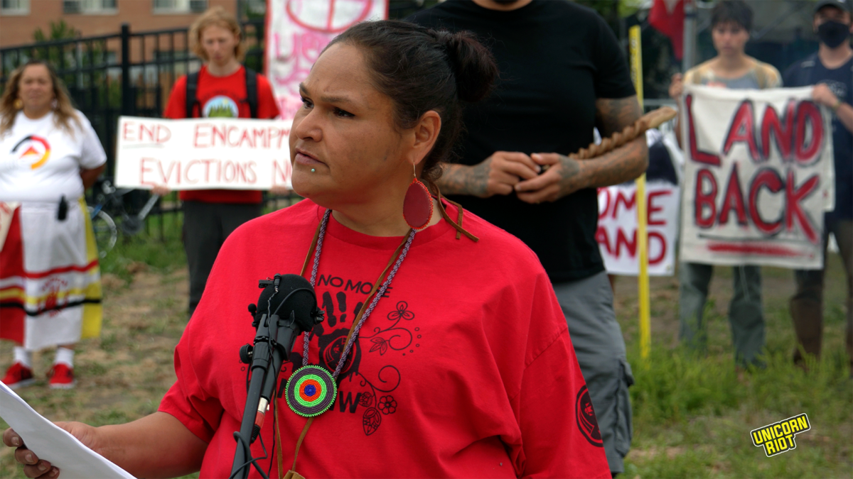 “The way the City of Minneapolis is responding is making it worse,” she said. “Every time the city evicts, relatives go missing. For Native relatives experiencing homelessness this practice carries the generational trauma of forced assimilation and hospitalization. It is a tactic used by colonizers to control Indigenous communities. Continued state harm has deep and lasting effects on Native communities.”