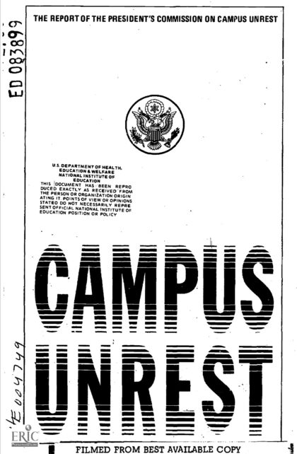After the shocking events at Kent State and Jackson State, in September 1970 President Nixon’s Commission on Campus Unrest, chaired by Pennsylvania Governor William Scranton, dropped its report (418 page PDF). One result was the rise of campus police departments.