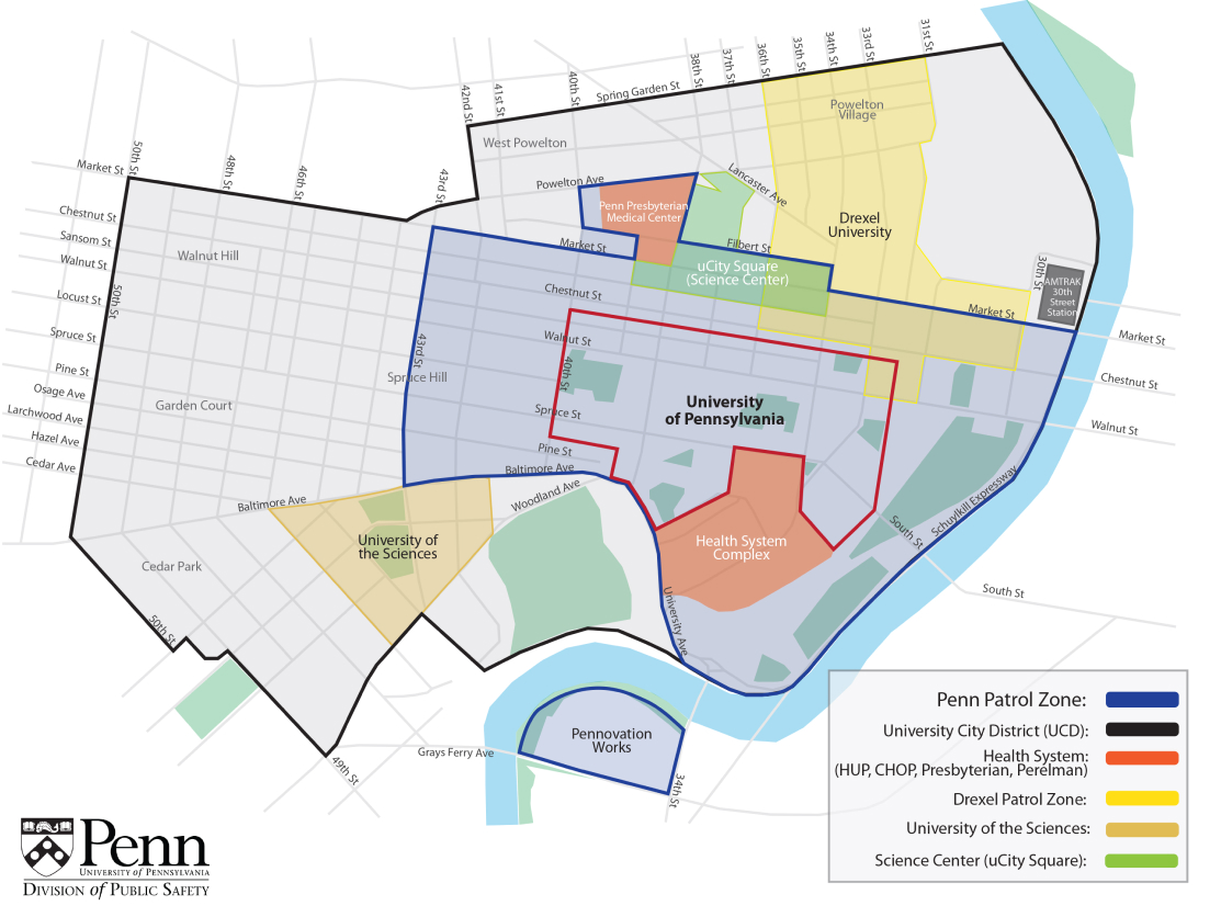 Campus police in this side of the city (Drexel & UPenn) have demarcated “patrol zones” which extend into the city.