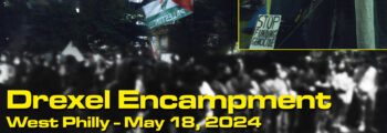 Philadelphia, PA — Students at Drexel University established an encampment in support of divesting from Israel on May 18, following a rainy Nakba Day commemoration march from Center City that started around 4 p.m. Philadelphia and Drexel police officers quickly surrounded the encampment with a ring of metal barricades and largely barred additional people from … Continue reading Drexel Students Set Up Palestine Encampment, Call for Divestment From Israel