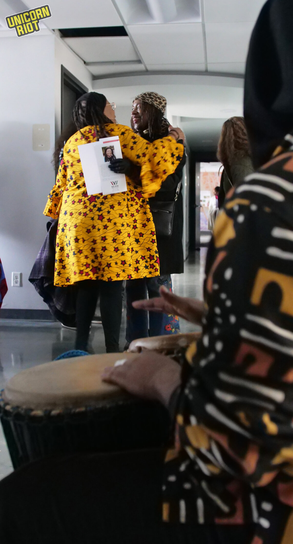 Those in attendance then invoked their ancestors into the space. Libations were performed by Joshua Gillespie (Brotha Asè), a Griot, storyteller, and grandson of Vusumuzi and Nothando Zulu. Brotha Asè is among the esteemed artists over the years to teach WE WIN youth how to play African drums.