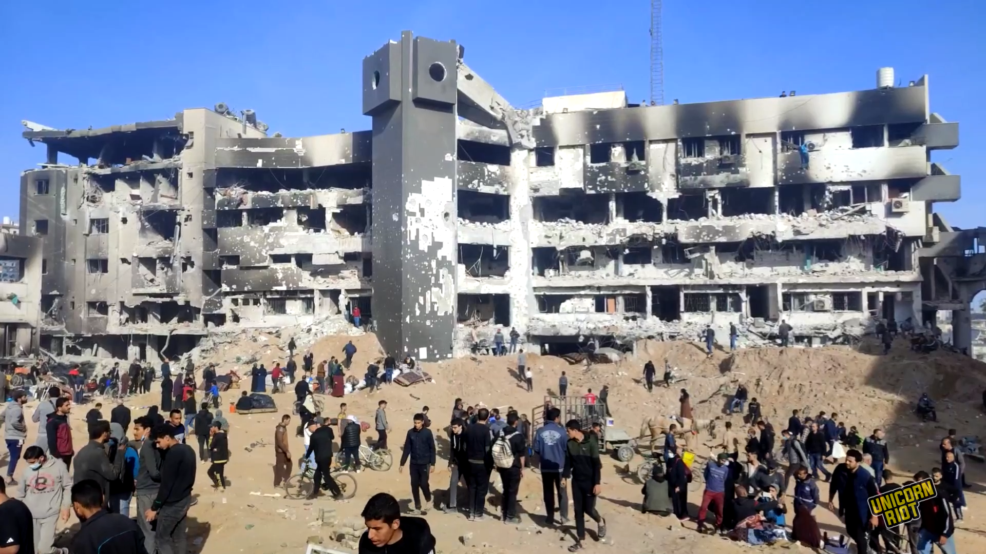Palestinian Families Seek Bodies of Relatives After Israel Withdraws From Shifa Hospital Massacre from Unicorn Riot.