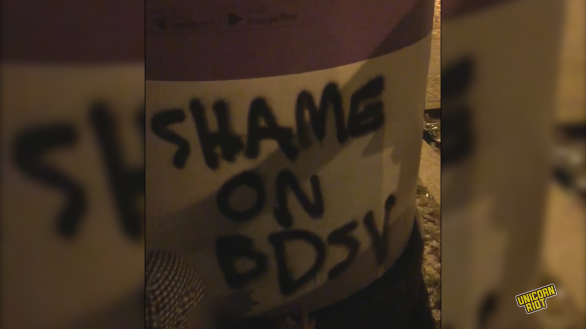 To find out more about the action and the broader context from which it arose, Unicorn Riot interviewed several participants who took part in the action, who responded to written questions collectively. All respondents requested to be quoted anonymously for their safety.
