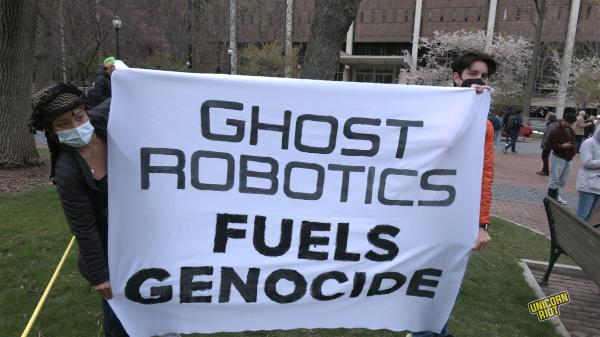 On April 4 a rally at the University of Pennsylvania kicked off the “Shut Down Ghost Robotics“ campaign. Pics below from the April 4 event: