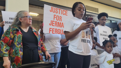 “We want all the guilty to be punished, and we want justice,” the man in the black shirt told the crowd.
