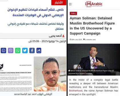 As if on cue, Egyptian media outlets Al Bawaba News and Al Bawaba Arabic, both aligned with the Sisi regime, published articles painting Soliman as the leader of a Muslim Brotherhood cell in America — in some cases using a photograph of an entirely different person.