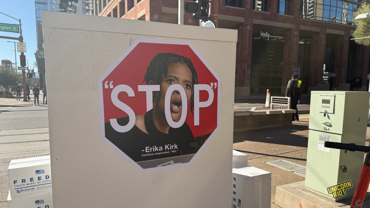 I descended the escalator into the bowels of the Phoenix Convention Center and was thrown into a writhing sea of red and white hats and shirts. Several media outlets compete with each other to be the loudest, the speakers’ voices shaking the building and drowning out the thumping bass from the adjacent rooms.