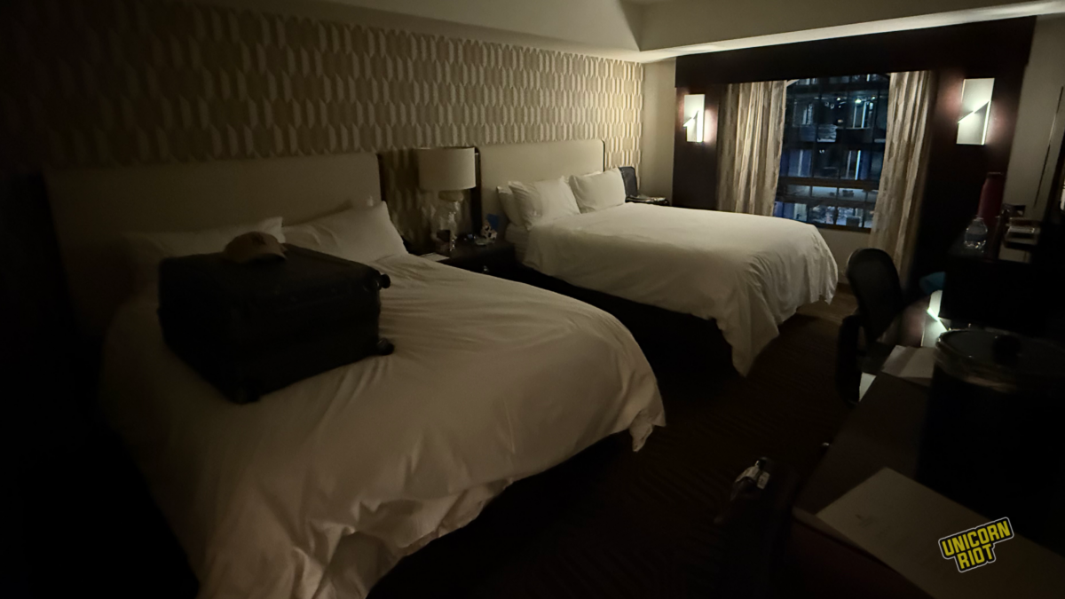 The sleeping arrangement was four students in each hotel room – two in each bed. I only learned about this after I purchased my ticket, but I held out hope that we would be given queen-sized beds. They were much closer to full-sized.