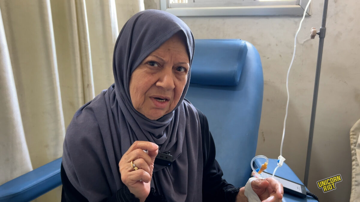 Inside Al-Helou Hospital waiting to get her blood drawn, Najah Muhammad Mahdi said that she was cancer free to two years, until the war on Gaza started. “After the war, new cancerous growths appeared.”