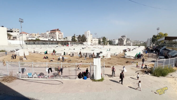 Several displaced Palestinian women, some staying at a converted Yarmouk Stadium in Gaza City, shared their stories with Unicorn Riot. For more from Palestine, see our trove of coverage here.