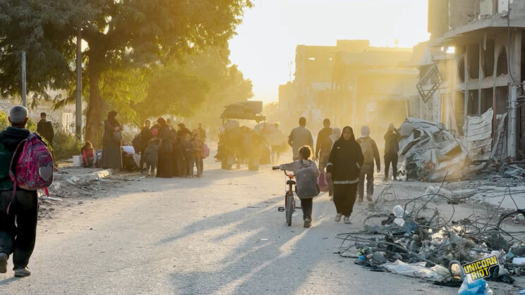 During their exodus, many said they saw dead and wounded Palestinians on the ground with no one to help them. “There is no civil defense or ambulances and there is not medical services,” said Israa Juma. She was forced to flee her home as quadcopters relayed audio messages to the population saying, “Get out! You are in a dangerous combat zone. If you stay, you will be considered terrorists.”