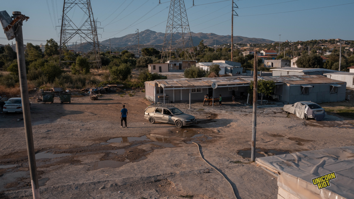 Raids often follow accusations of noise complaints and electricity theft, which is a thing that people of the community openly admit to doing out of necessity, carried out by OPKE — Greece’s heavily armed special police units, often function as collective punishment.