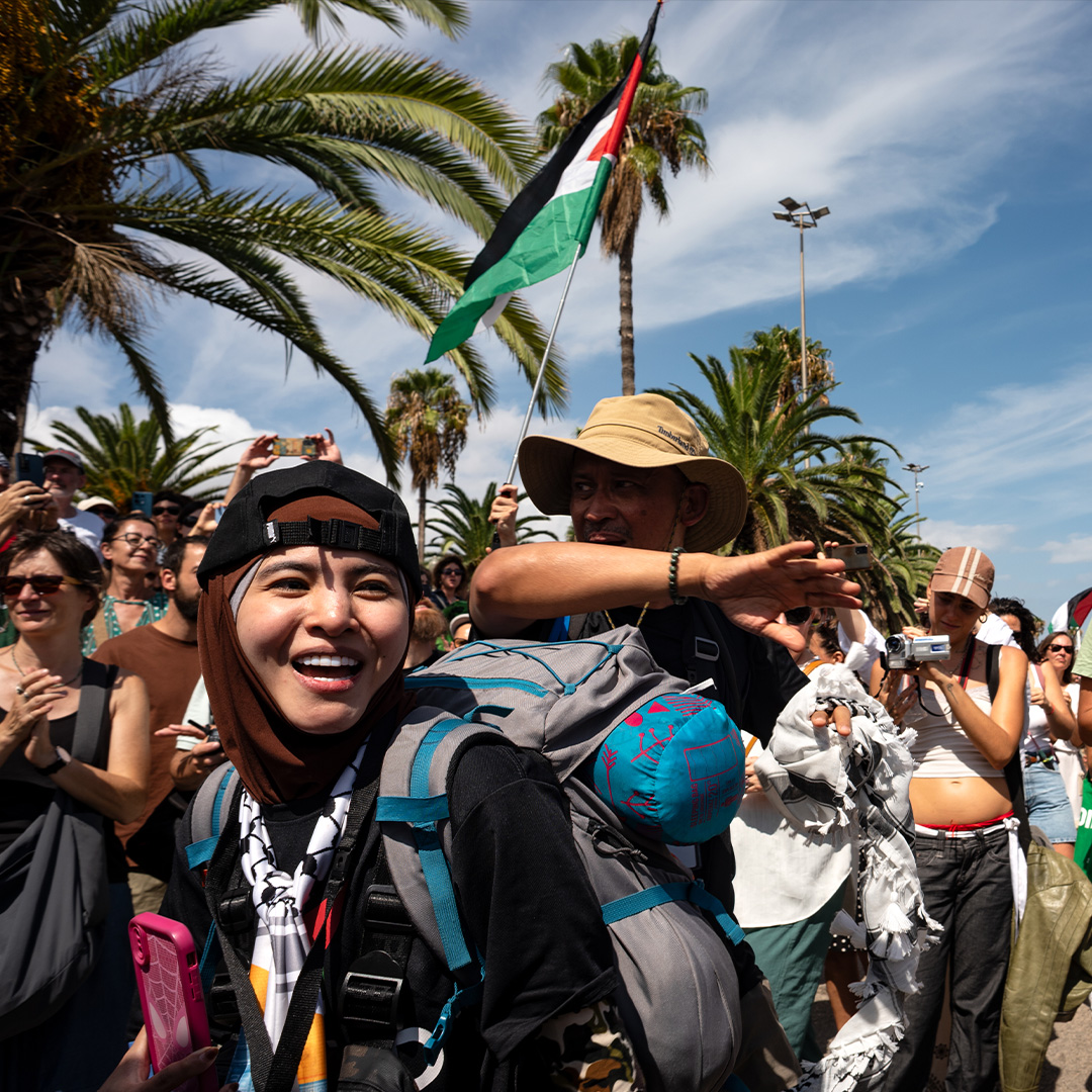 The ships first left Barcelona, Spain on August 31 where a crowd of thousands gathered in the city’s bustling harbor to send the Global Sumud Flotilla (GSF) off. The ships were delayed by a storm but in six days made it to their planned stop in Tunis to rendezvous with more ships and activists. An unknown number of ships are expected to eventually join from Italy, Greece, Libya, and Egypt.