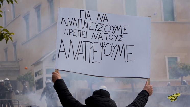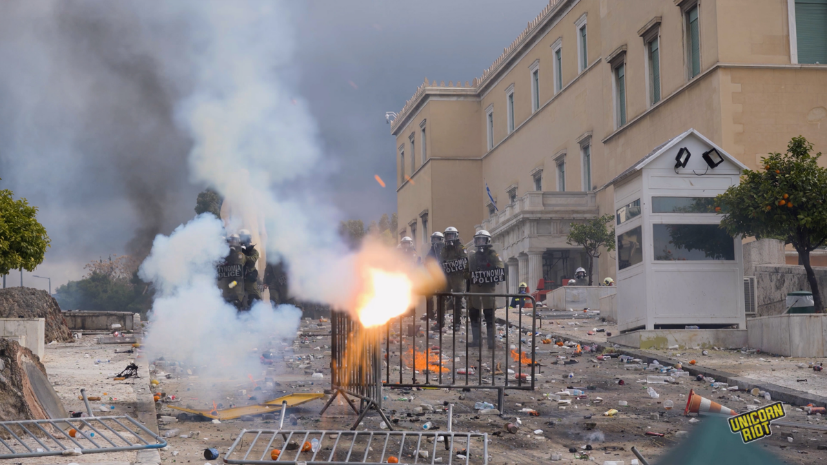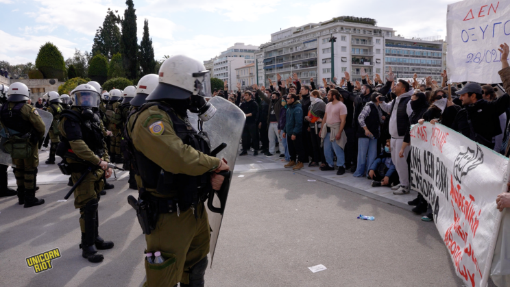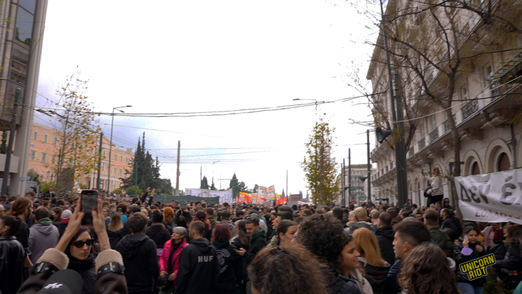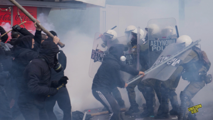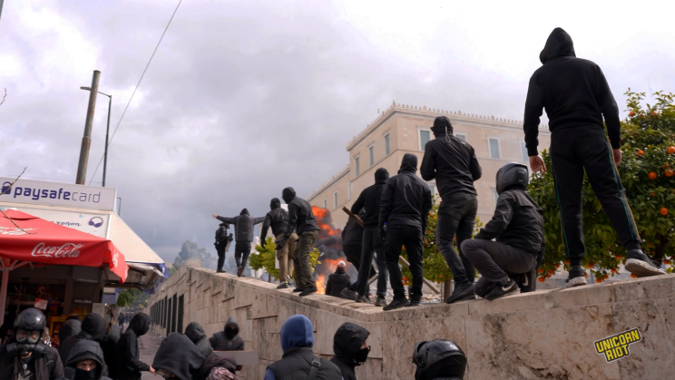 On Feb. 28, 2025, more than a million people protested across the country and hundreds of thousands flooded the streets of Athens, in the largest post-war protest the country has seen. In between volleys of molotov cocktails and tear gas smoke, Unicorn Riot heard from several participants.