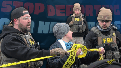 Also on Dec. 6, a video recording showed masked ICE agents violently raiding a Burnsville home, leaving a 7-year-old boy without his parents after detaining several people from different families. The incident occurred after following a couple home from grocery shopping. ICE agents attempted to arrest the couple after they pulled into their driveway. They jumped on the driver, a male, but his partner was able to escape into the house. ICE agents then raided the house, breaking down doors.