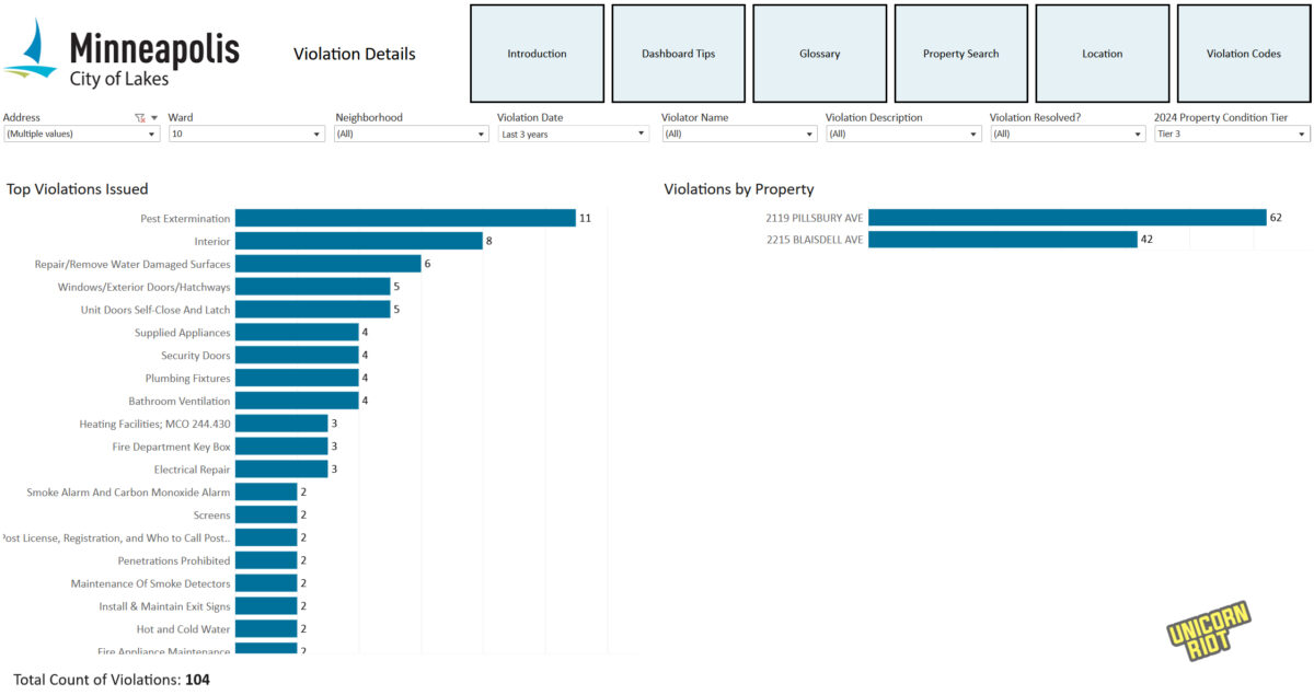 Under the city’s tiered rental license system, Tier 3 is the worst classification, applied to properties with frequent, unresolved safety and health violations. Out of roughly 24,000 rental licenses in Minneapolis, only about 160 are Tier 3 — yet IPG’s buildings are consistently flagged for issues like broken security doors, pest infestations, and repeated maintenance failures.