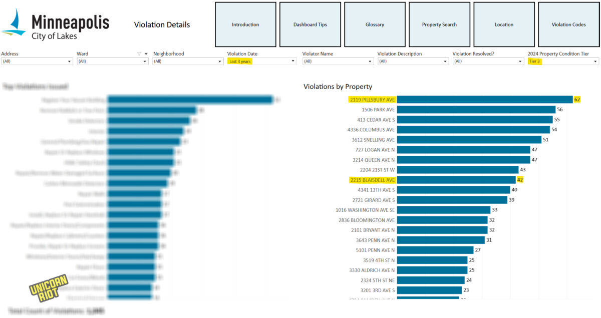 The IPG-owned property on 2119 Pillsbury Ave. racked up 62 Tier 3 housing violations over the last three years, more than any other apartment complex in Minneapolis. Not far behind it was another IPG property at 2215 Blaisdell Ave with 42 violations.