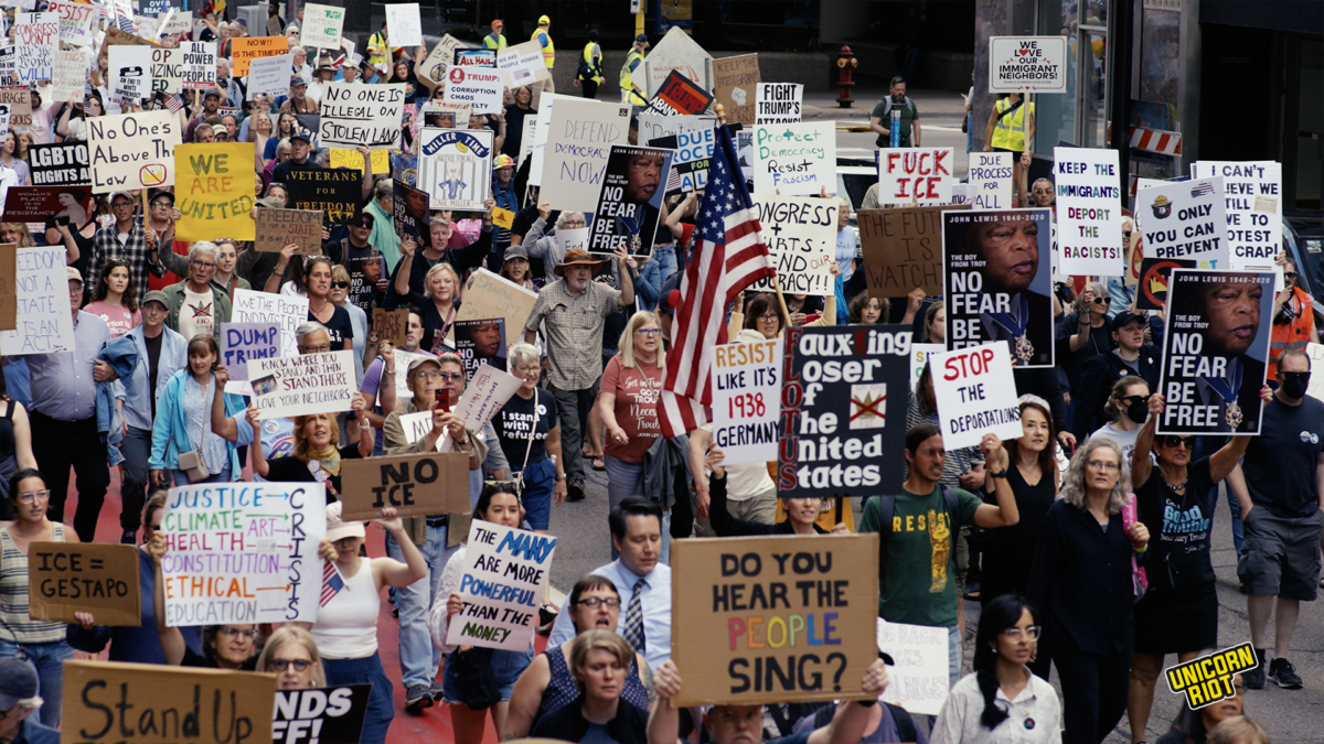 There were 1,600 events nationwide that took place, and thousands of people gathered for nonviolent action in Minneapolis as part of the Good Trouble Lives On National Day of Action with organizers from Indivisible Twin Cities, MN 50501, Women’s March MN, AFL-CIO, Black Lives Matter Minnesota, and the Racial Justice Network.