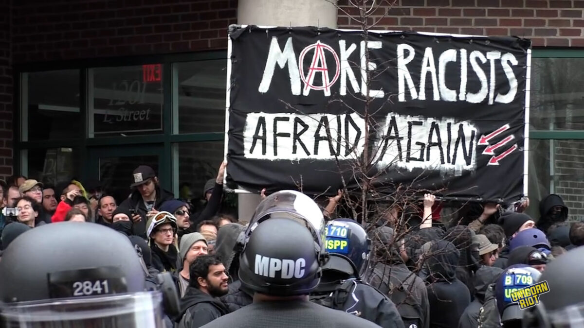 For most objective observers, the story began with the protests on Inauguration Day, January 20, 2017, colloquially known as J20. Thousands of people protested the inauguration of Donald Trump in Washington, DC and across the country. An antifascist, anti-capitalist march that started at Logan Circle that morning and snaked through the streets of downtown DC targeted corporate storefronts, resulting in a few broken windows at businesses like Bank of America, McDonald’s, Starbucks, and Wells Fargo.