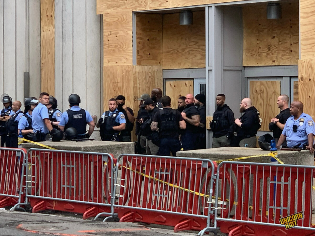 As of 10 p.m. on June 11, additional barricades were placed around the FDC and its large window facade was boarded up.