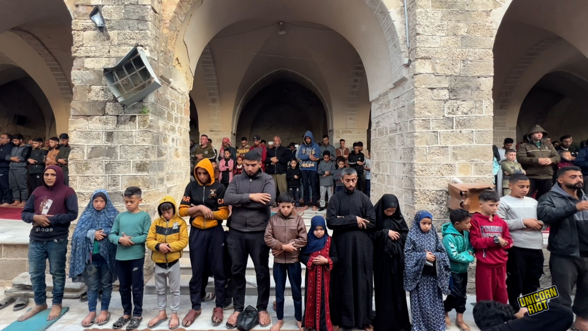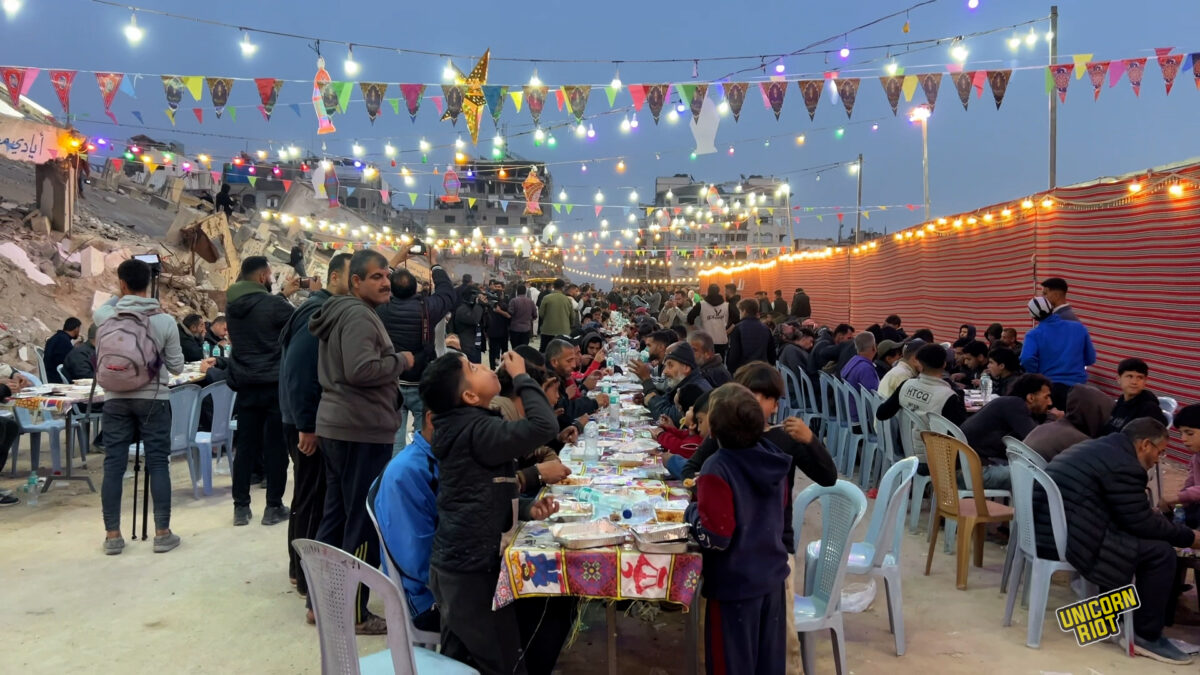 Gaza, Palestine — For Palestinians in the bombarded Gaza Strip, the holy month of Ramadan was stained by genocidal acts perpetrated by Israeli forces for the second year in a row. In attempts to understand those continuing to practice their faith whilst surviving horrors, Unicorn Riot heard from several people at several Ramadan events in Gaza, including Gaza City and Khan Younis.